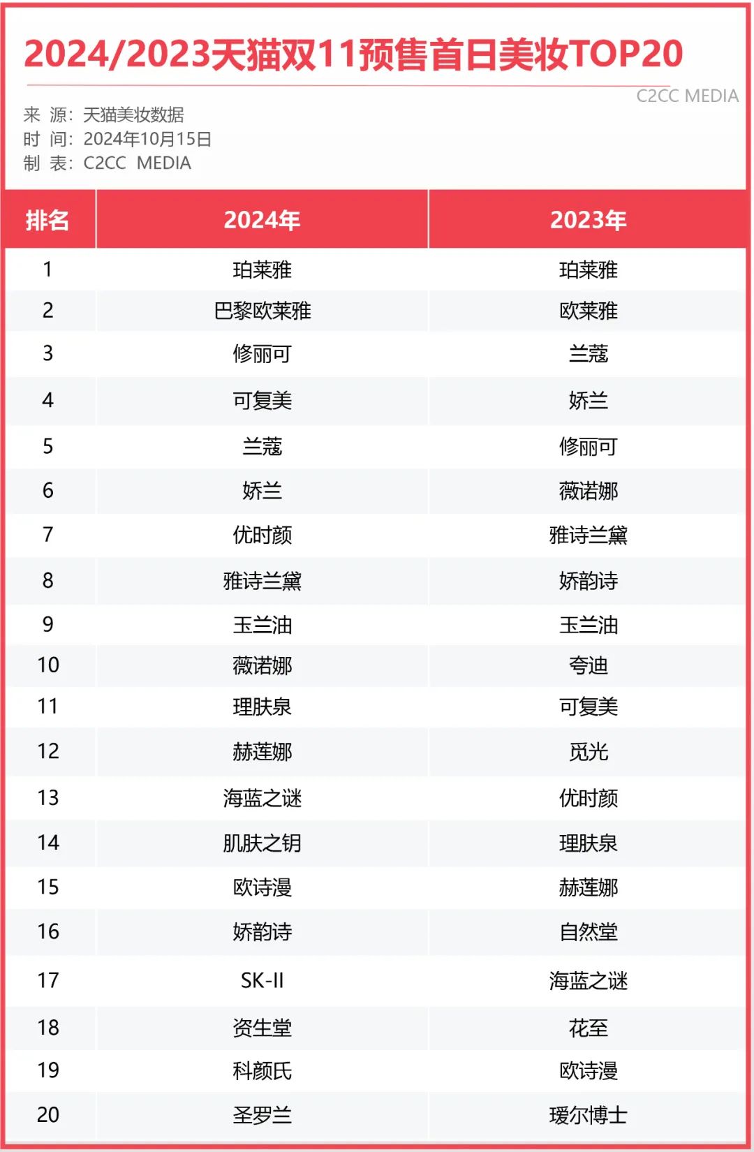 01、天猫美妆双11首份榜单,谁坐稳了头把交椅