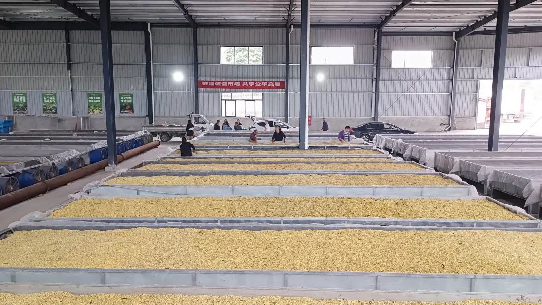 现场,经过称重和质检后的鲜花被均匀地摊晾在风槽之中。该风槽是从雅安引进的茶叶烘干风槽。两台大型热风炉正在加热,加热后的热量经鼓风机高速运转传导到各风槽,鲜花在风力的作用下慢慢萎凋、风干。“掌握烘干的温度很重要,这里面蕴含着较高的技术含量,若掌握不好,桂花色泽就会‘黑化’。通常情况下,12 小时便可完成一波鲜花的烘干。”程佳介绍,目前他聘请了两位专业人员做技术指导。