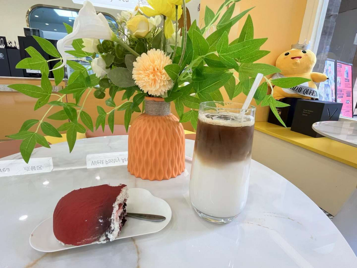 路过一家风格很小清新的蛋糕店,我进去看了下,正准备出门时,老板叫住我,说要请我喝咖啡,我连忙推辞,却招架不住老板的热情,只好坐下。