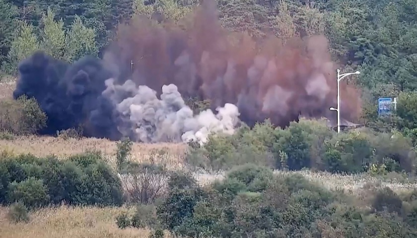 据央视新闻报道,经朝鲜国防省确认,2024年10月15日中午朝鲜人民军对江原道高城郡甘湖里以及开城板门区东内里各60米的路段进行爆破,完全切断与韩国连接的公路和铁路。此举的依据是“把韩国定义为敌对国家”的朝鲜宪法要求,以及敌对势力严重挑衅的安全形势。