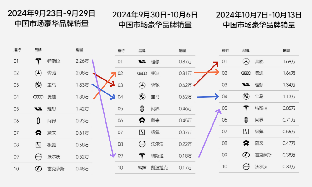 03 特斯拉周销升至豪车第五,却再被理想BBA赶超