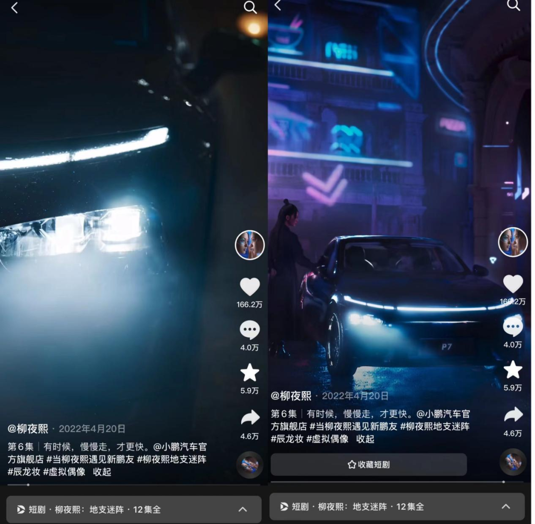 不过要是把视线拉回到2年前,在虚拟人“柳夜熙”正当红的时候,新能源汽车领域的另一位参赛者小鹏汽车,其实比岚图汽车更早看到了短剧这个营销新阵地的潜力。