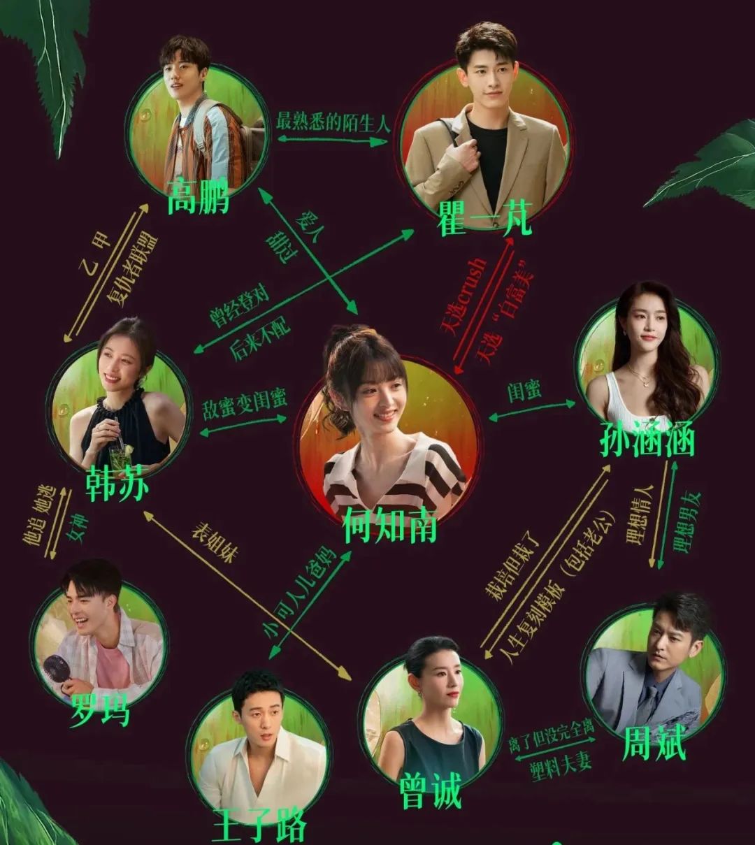 《半熟男女》的主角设定堪称全员恶人,人物之间的关系比《红楼梦》还要错综复杂,人均两个男友or女友是标配。