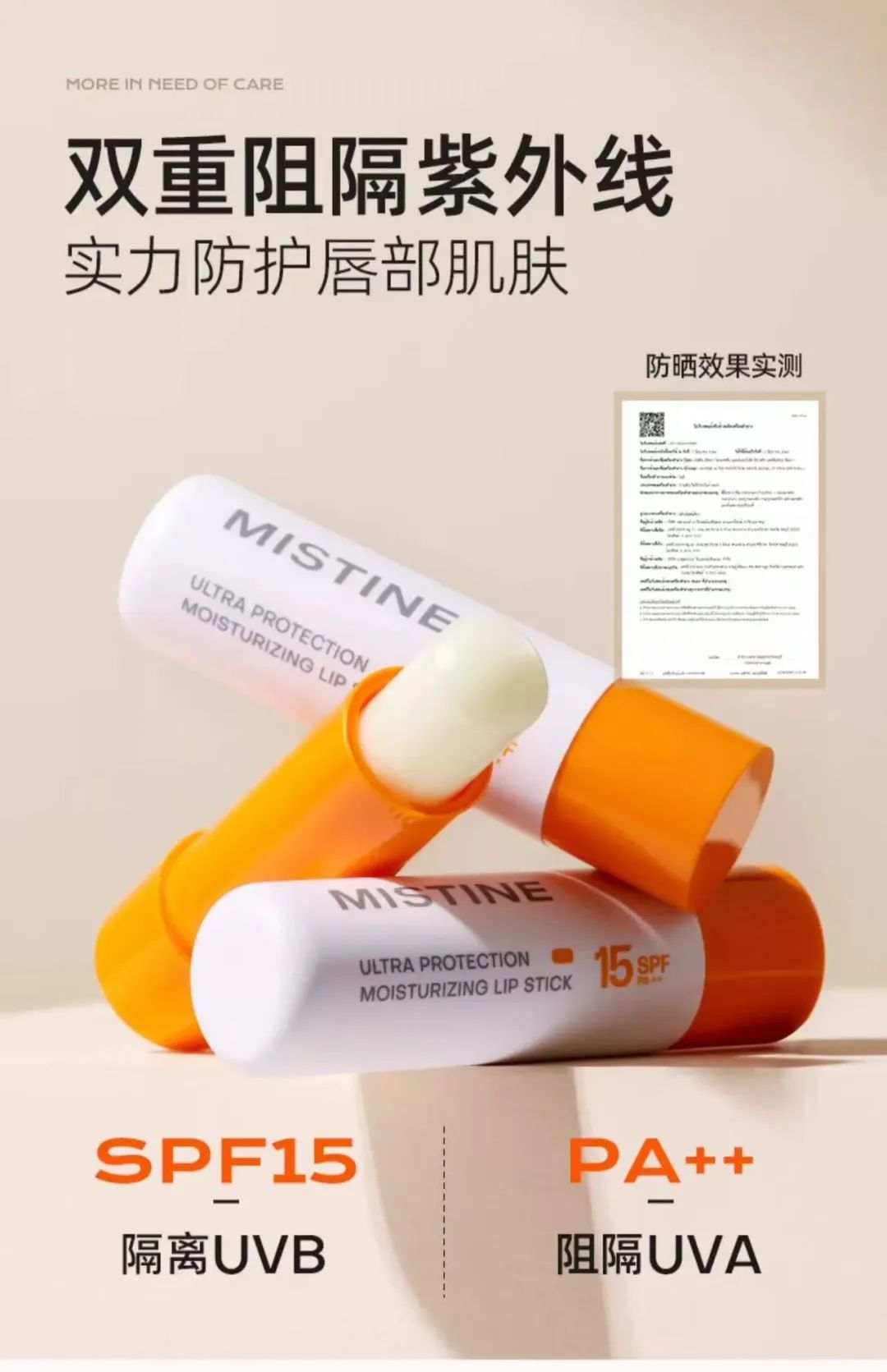 例如,曼秀雷敦薄荷润唇膏持有防晒特证,搭配薄荷呵护配方,具有防晒+滋润+修护功效,防晒等级为SPF15;泰国防晒品牌MISTINE专研防晒型润唇膏,UVA/UVB双重防护能够满足日常所需,防晒等级为SPF15/PA++。此外,瑞士专业防晒品牌优佳专研防晒黑科技,以多光谱防晒、物化结合,能有效抵御光老,防晒等级为SPF50/PA++++。