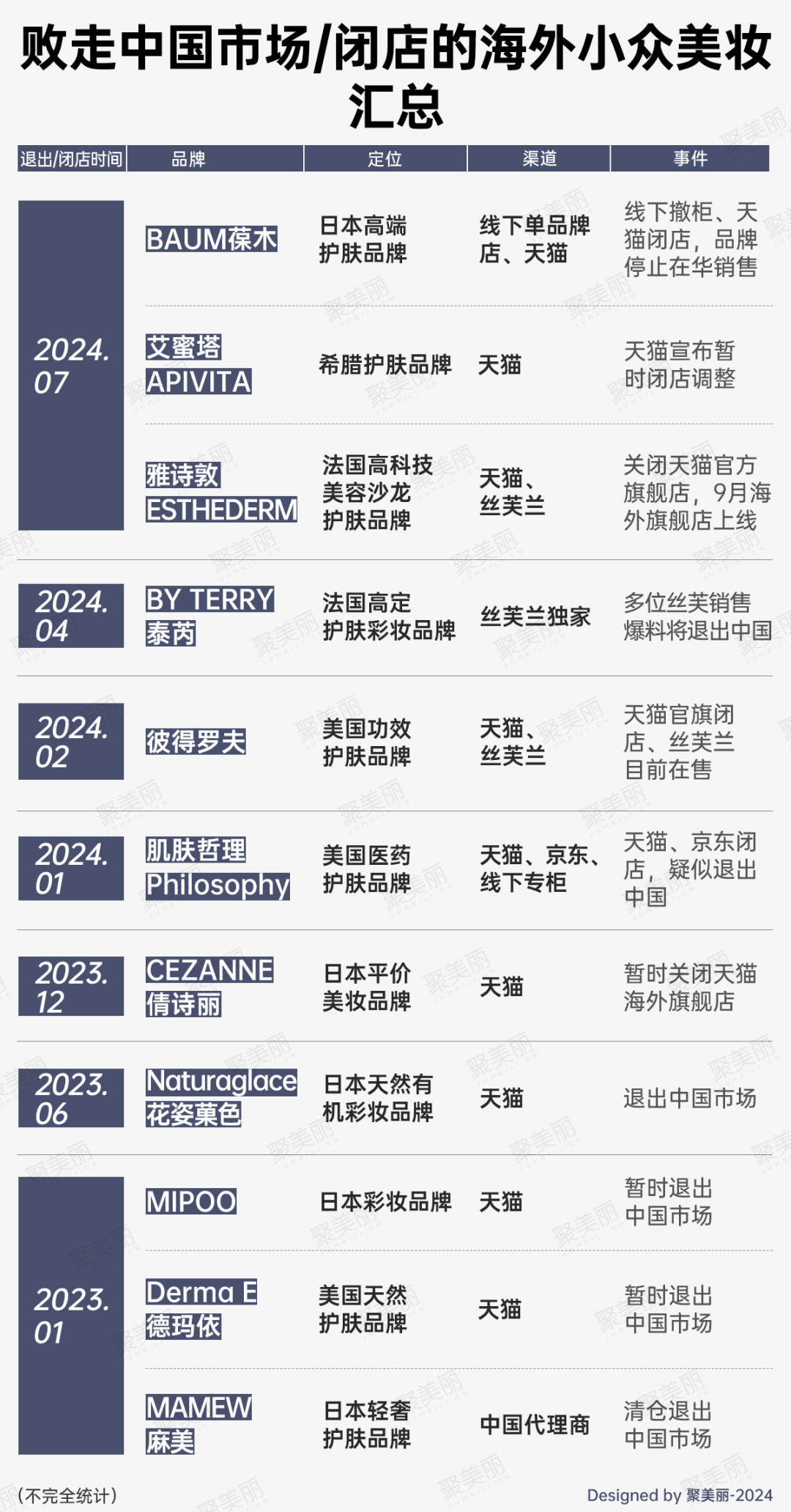 实际上,也不止香水赛道如此,回顾近两年的国货美妆市场,显而易见的一点就是,败走中国市场/闭店的海外小众美妆品牌并非个例。如Naturaglace花姿菓色、CEZANNE倩诗丽等近年在中国市场走向败局。