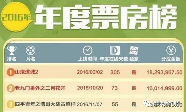 (爱奇艺2016年度网大票房分账TOP3)