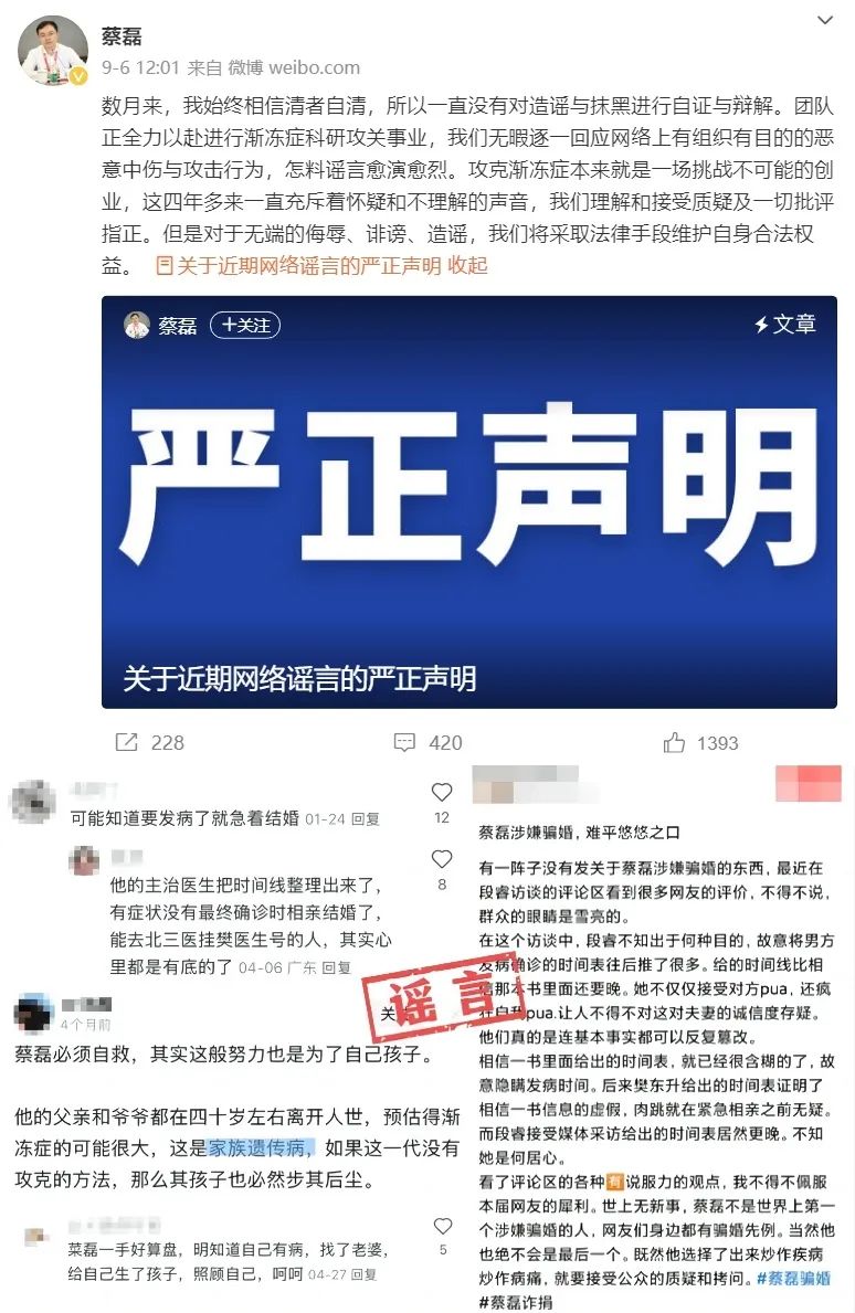 拿着一手悲情+励志牌入场的蔡磊夫妇,尤其需要维系网友的信任。于是,在过去两年里,蔡磊需要一次次自证疾病、强调包括直播、出书在内的所有收入,都投入到渐冻症科研之中。今年以来,蔡磊夫妇也多次发起捐赠,用于支持渐冻症的研究与治疗。