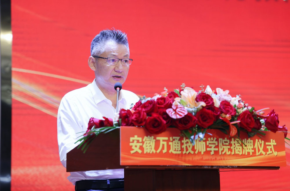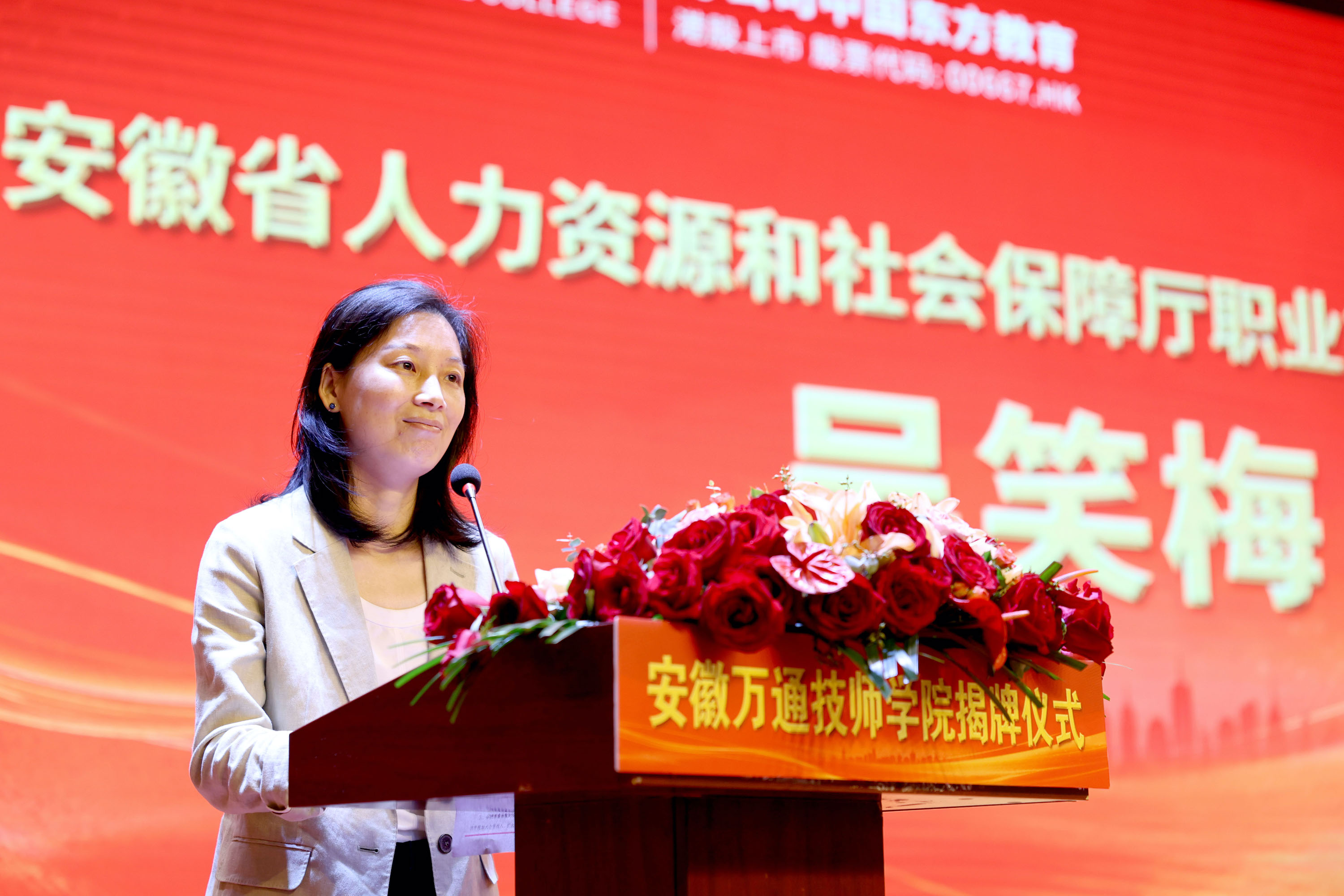 揭牌仪式上,安徽省人力资源和社会保障厅职业能力建设处处长吴笑梅宣读《安徽省人民政府关于同意设立安徽万通技师学院的批复》文件,这标志着安徽万通技师学院正式获得国家层面的认可与支持。