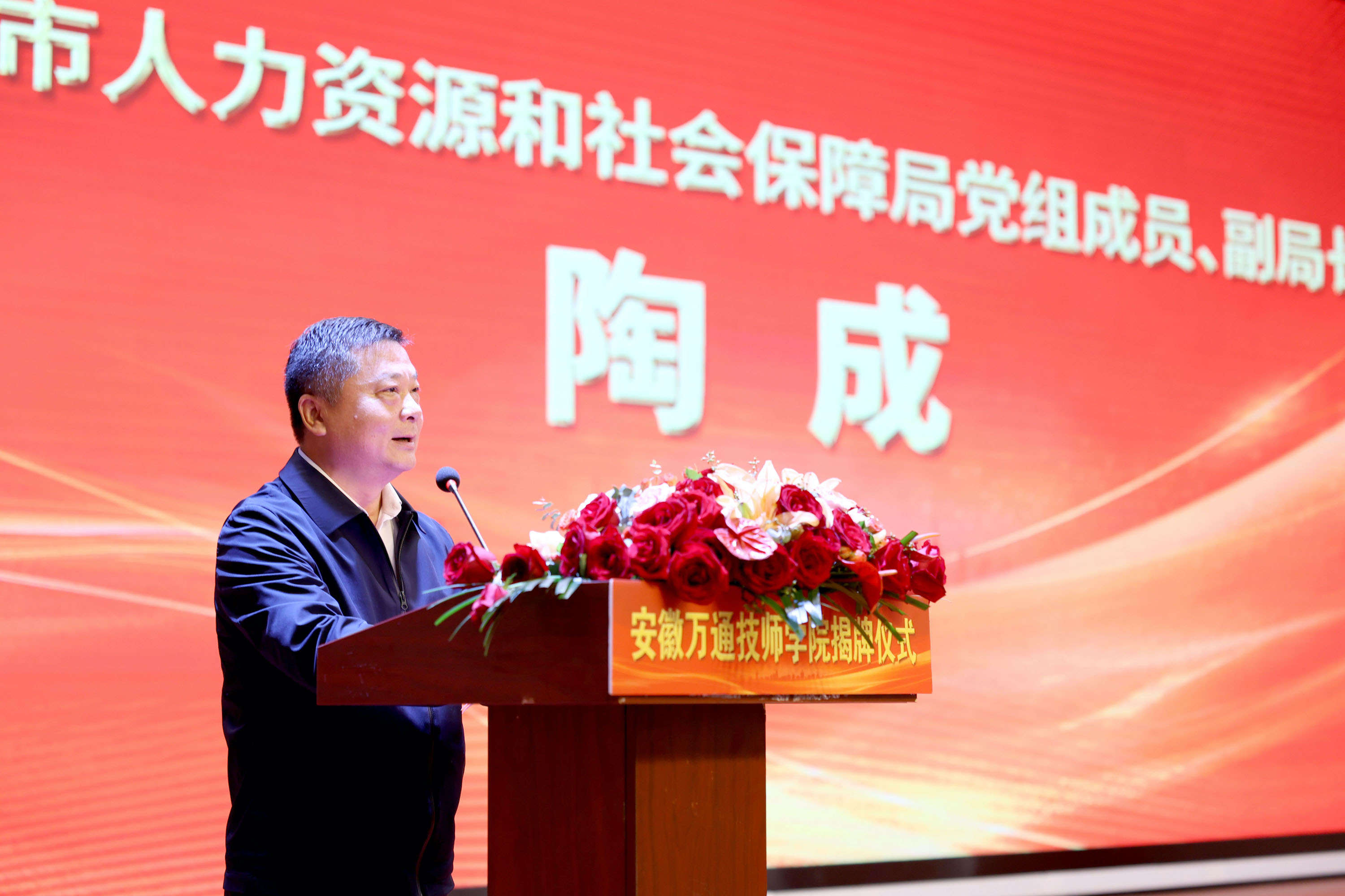 合肥市人力资源和社会保障局党组成员、副局长陶成在致辞中表示,技工院校是培养技能人才、提升劳动者就业能力的重要平台,希望安徽万通技师学院立足新起点,坚持立德树人根本任务,聚焦产业发展和高质量充分就业需求,深化技工院校办学模式、育人方式改革,强化师资队伍建设,加大办学投入,奋力争创全省领先、全国一流的现代化高水平技师学院,为加快推进技工强市建设贡献力量。