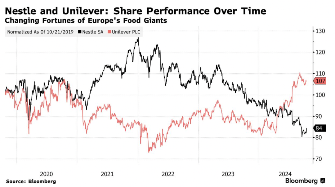 在昨天发布再度下调全年增长指引的财报后,该公司股价曾经一度出现下滑,但在业绩会后反弹上涨了2.7%。据彭博统计,这让今年以来的雀巢股价跌幅收窄至12%。