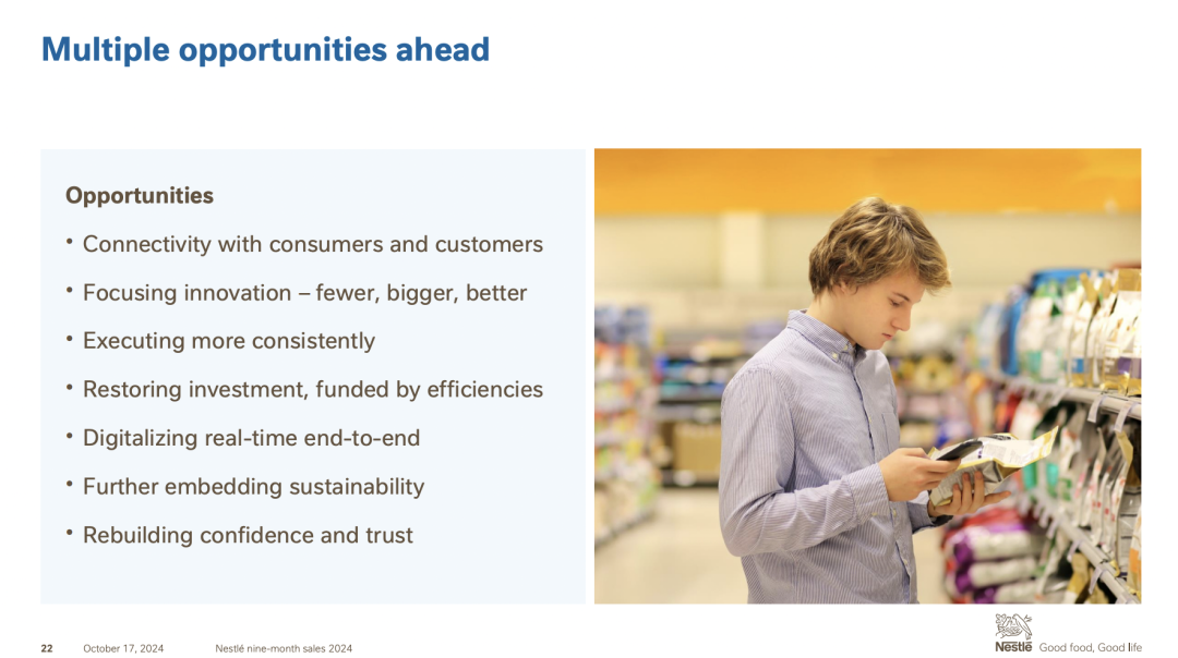 二是以投资把握机遇。为推动增长,雀巢需要将投资力度恢复至以往的水平,包括但不仅限于在市场营销上的投资。