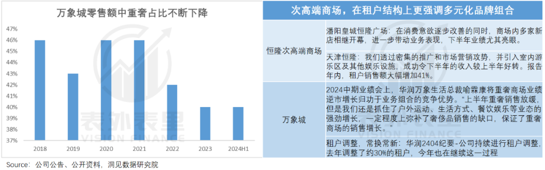 事实上,恒隆旗下的顶奢商场租金收入虽然下降4%,但次奢商场最高有15%的正增长;而万象城次奢零售额增长高达25.7%。