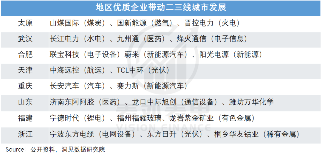 不止传统能源行业如此,这几年蒸蒸日上的新能源股、资源股以及工业制造黑马等,许多都重点布局在二三线城市。