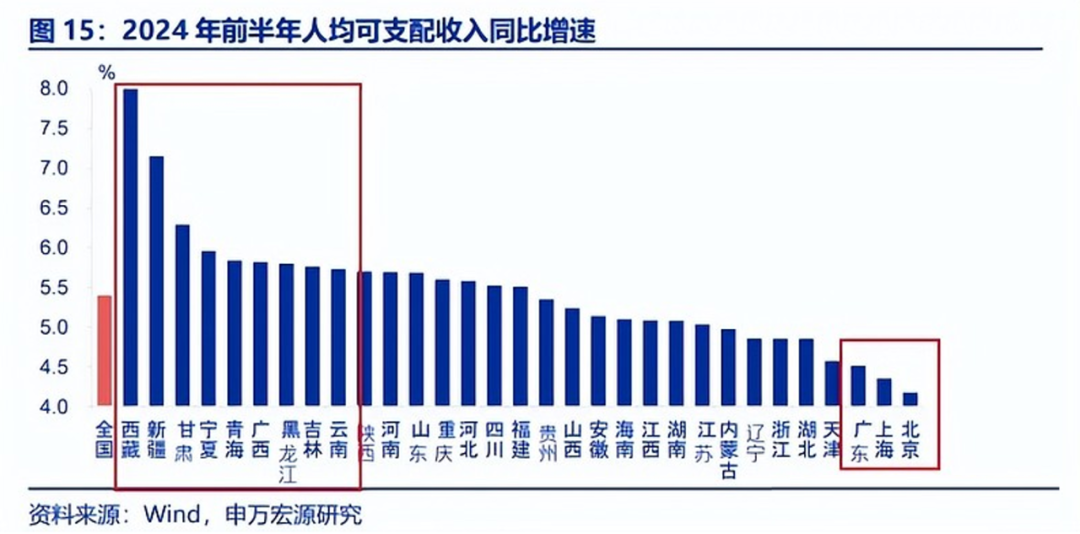 也就是说,随着不同产业的调整变化,一线和二三线居民的收入增速出现了“反转”,上半年北上、广东人均可支配收入增速已排到了全国吊车尾。
