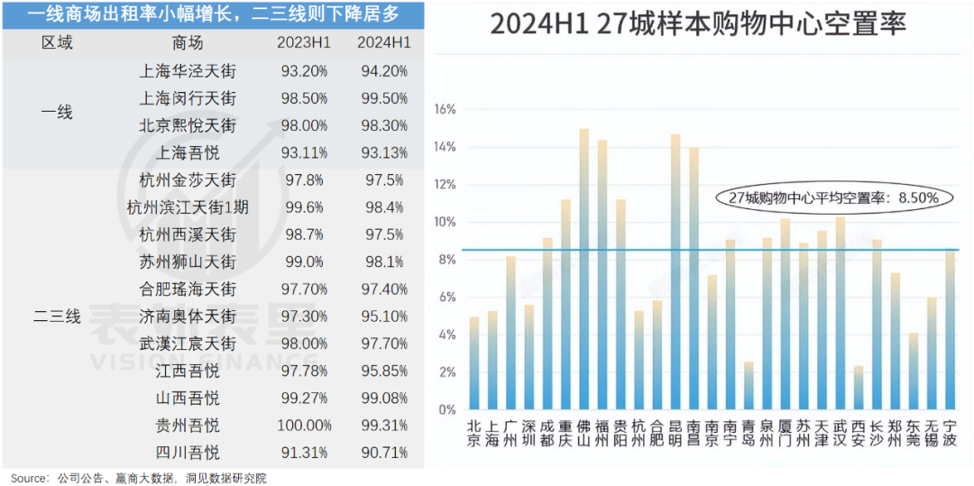 可见,二三线城市居民的消费升级,牵引着商业地产进入了高端升级、大众过剩的业态置换期,这个过程难免会影响到商场的出租率。