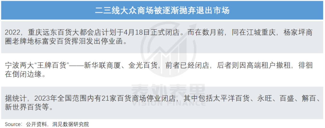 有了这些好去处,消费者对那些设施老旧、品味落伍的大众百货就提不起兴趣,不少承载了一代人记忆的老百货,逐渐沦为了“时代的眼泪”。