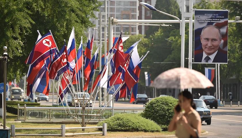 10月14日,朝韩因“无人机渗透”事件急速升温之际,俄罗斯议会下院批准了4个月前俄朝全面战略伙伴关系条约》。据央视新闻报道,该条约第四条规定:如果一方受到某一国或数国武力攻击,并处于战争状态,另一方将立即以一切可用手段向前者提供军事等援助。