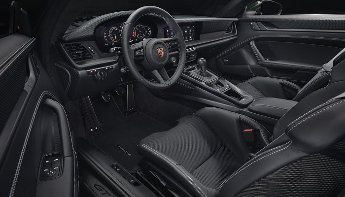 新车内部同此前发布的.2普通车型大部分一致,最后的机械式转速表也被全液晶仪表盘取代。出于赛道使用的目的,GT3高性能组件将提供碳纤维材质的防滚架,Touring车型则提供后排座椅选装。