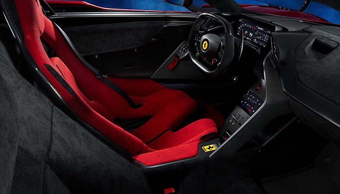 动力为新车重点,法拉利放弃了自F50起的V12发动机传统,转而采用499P赛车的3.0T V6+三电机混动系统,其中两台电机布置在前轴使新车成为首款四驱旗舰。