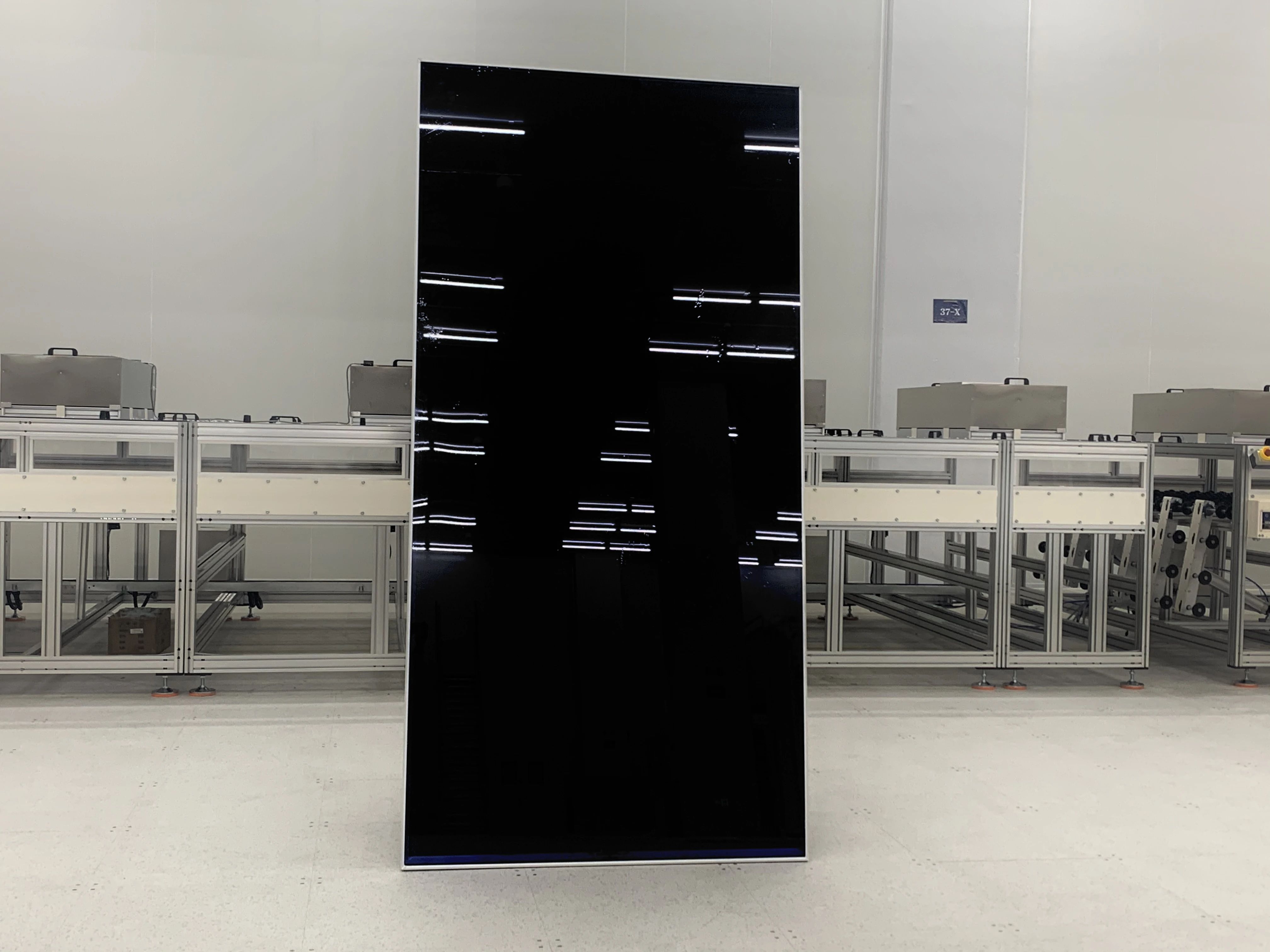 作为行业内首条2.4m×1.2m钙钛矿薄膜太阳电池生产线,从产线规划、设备选型到安装调试,全程实现了自主化,采用了高度自动化和智能化的生产设备。从9月10日设备搬入到10月18日产品首样产出,历时仅38天,这一速度也创造了行业新纪录。