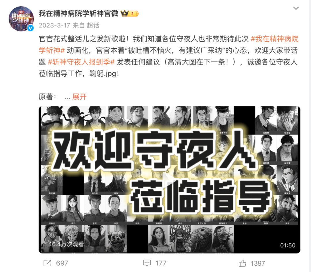 在社交媒体时代,《斩神》动画的每一步动作都在调动粉丝们的群情参与。从释出第一支概念PV,到公布50位动画形象草图,邀请粉丝们提出修改建议,再到邀请“守夜人”讲述与《斩神》的故事,在北京举办斩神之凡尘神域live专场……《斩神》动画不仅真正实现了与“守夜人”们一起共创,更将动画化作为深化IP与粉丝情感联结的绝佳契机。