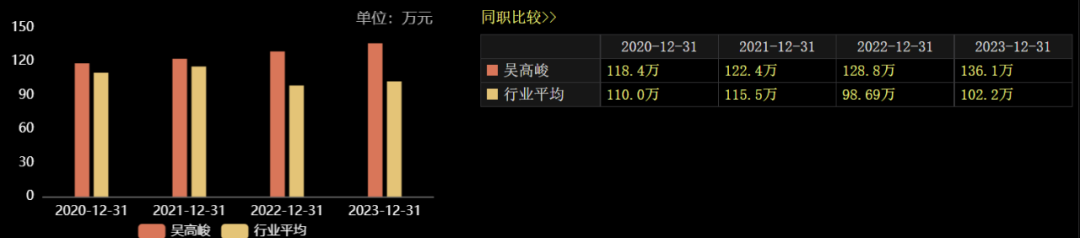 虽然普通员工薪资并不高,但董事长吴高峻和总经理诸葛斌却收入颇高,2023年两人年薪均为136.1万元,均高于行业平均薪资水平。