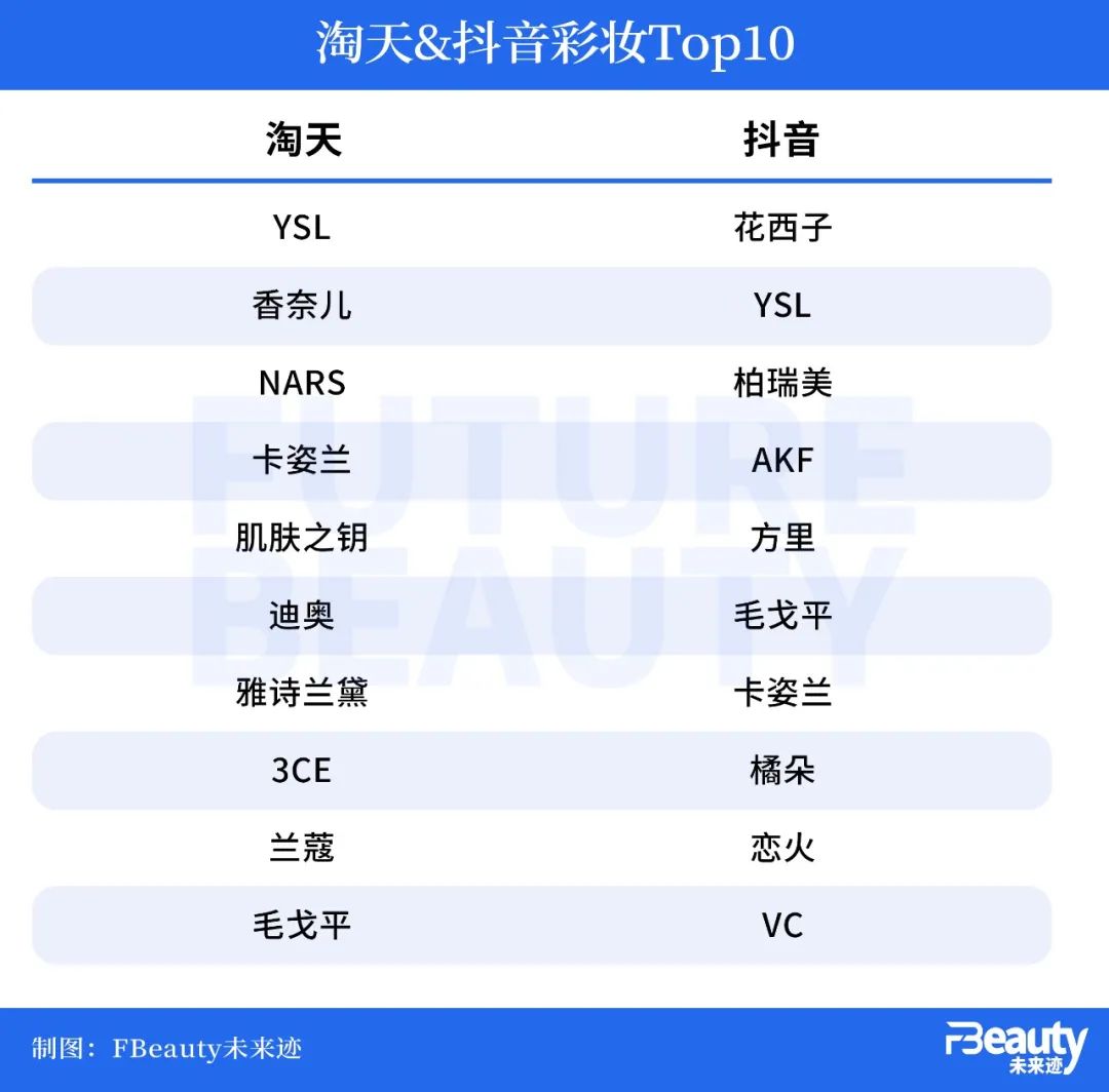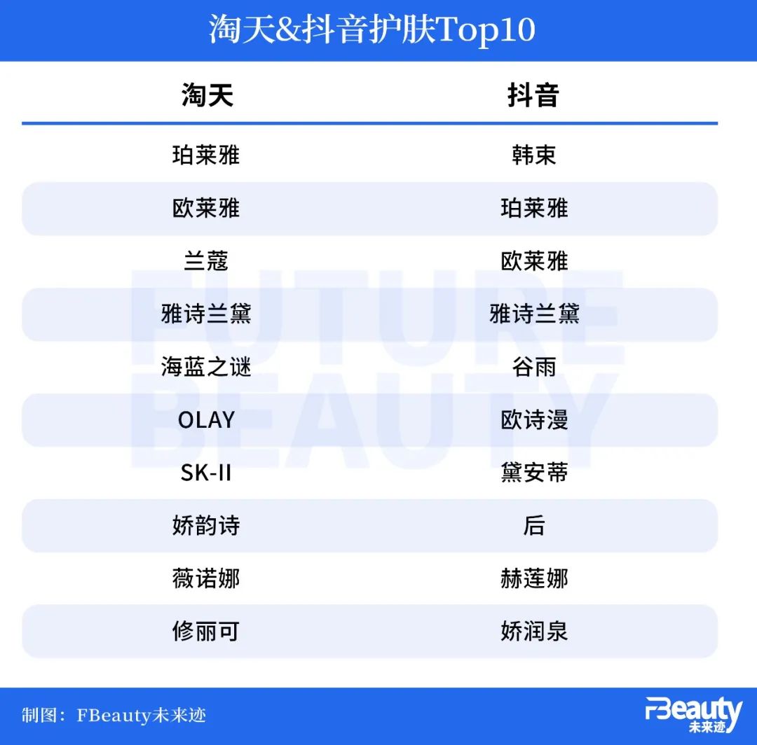 在2024年的行业“阵痛期”中,美妆品牌排名也发生巨大变化。以淘天和抖音两大平台举例: