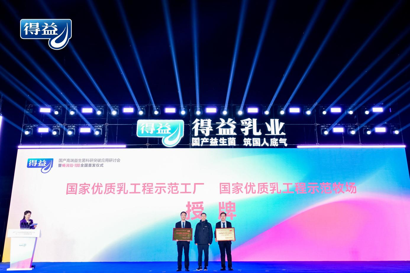 随后,农业农村部食物与营养发展研究所所长王加启为得益乳业颁发了“国家优质乳工程示范工厂”和“国家优质乳工程示范牧场”的牌匾。这一荣誉不仅表彰了得益乳业再次顺利通过优质乳工程的复评审验收,更体现了得益乳业在鲜活营养领域所取得的卓越成就,充分满足了消费者的健康需求,为国人的健康事业贡献了重要力量。