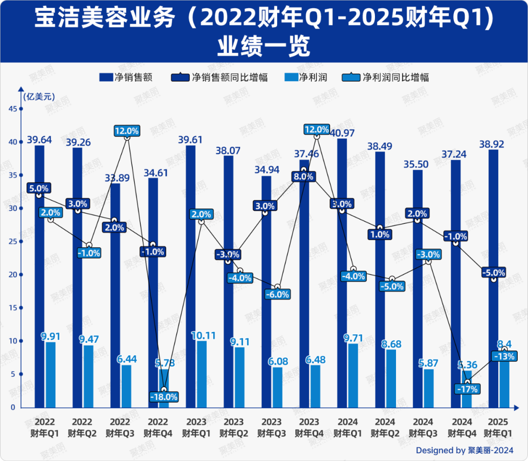 从上述内容来看,虽说宝洁2025财年Q1整体业绩和美妆业务呈双跌,但是该季度的业绩在这3年中仍然达到第二高,净销售额仅略低于2024财年Q1。