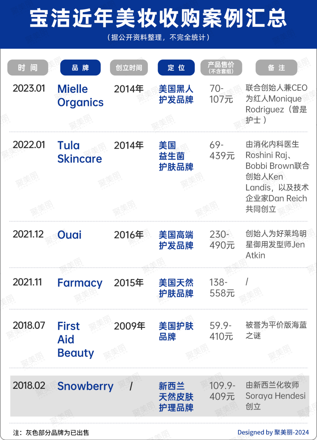事实上,近年来宝洁在持续收购美妆品牌,扩充该业务的产品组合,先后收购Snowberry(后被出售)、Mielle Organics、Tula Skincare、Farmacy等护发/护肤品牌。