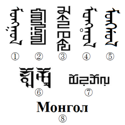 ▲蒙文历史上出现过八种文字,蒙古国使用的是用西里尔字母拼写的新蒙文