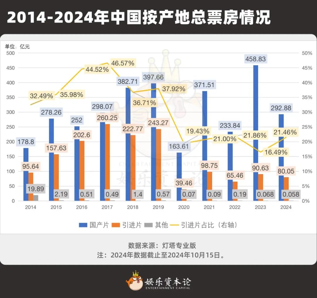 然而,国际地缘政治格局开始发生变化。2017年地缘冲突不断,2018年中美贸易战开始;逆全球化减缓了文化的认同和融合。从此,好莱坞占领新票仓的愿望失效,本土票房占比持续攀升。