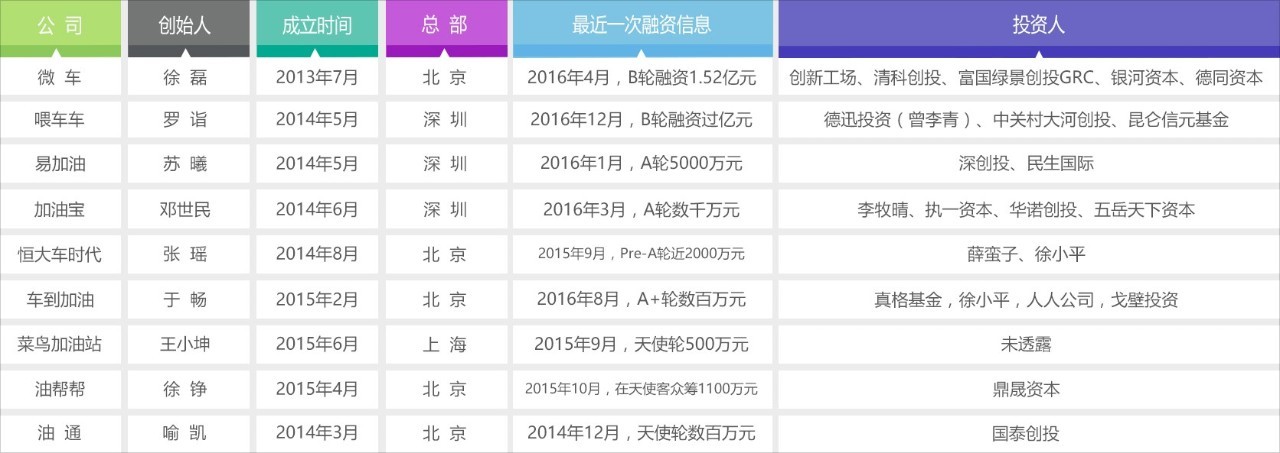 高达数万亿的加油市场,让略显传统的加油站在互联网人看来是一块极具改造价值、待开垦的肥沃草地。自2013年开始,有一批互联网创业企业进入加油行业,比如微车,喂车车,易加油,车到加油,加油宝,油帮帮等,在诱惑的外表下,各家创业公司在下水游了一圈之后,有溺死的,也有呛了几口水的,也有开始熟悉水性、练习踩水的。