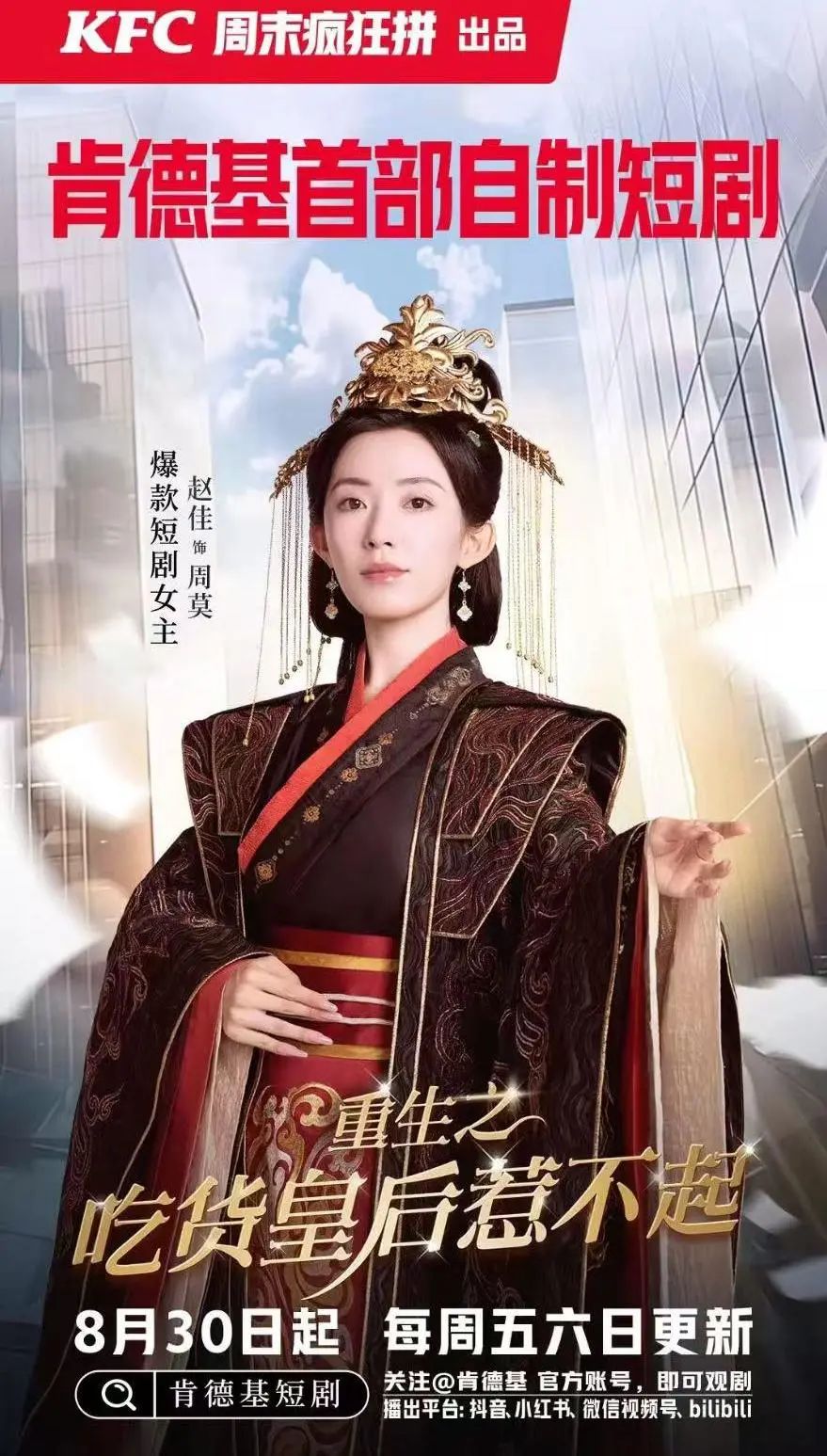 短剧强势走红的当下,麦当劳、肯德基也秉持着“绝不会错过互联网上的任何一个新梗”的营销理念,果断跟进。7月,麦当劳在推出了品牌定制短剧《重生之我在麦当劳修炼魔法》,随后,肯德基也在8月推出了自制短剧《重生之吃货皇后惹不起》。