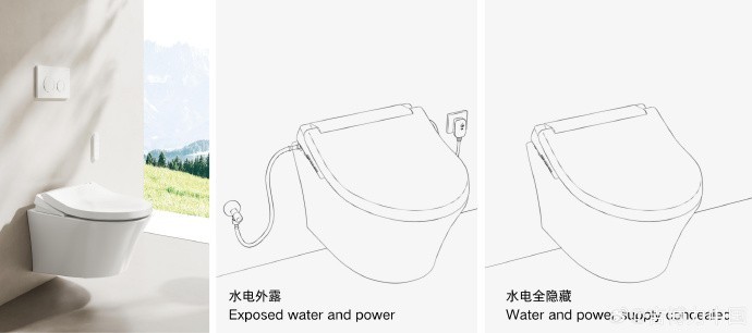 以吉博力Nuna V Combo一体式智能挂厕为例,其水电全隐藏的设计更加简约,也不用担心幼童、毛孩子扒拉外露的电源插座,进一步减少安全隐患。