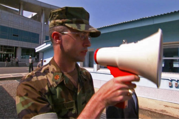 有时双方也要喊话传达信息。尽管有只旧式扩音器,朝鲜也并不总会应答。