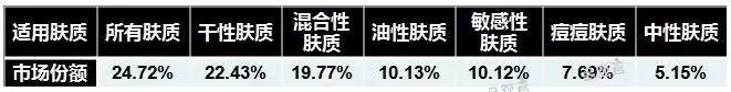 在使用肤质这一维度上,各类肤质产品的市场份额占比相对平均。其中,适用于所有肤质、干性肤质、混合性肤质3大类的洁面产品占据了66.92%的市场份额。整体而言,消费者在线上洁面产品的选择上已经有了很强的“肤质细分意识”。