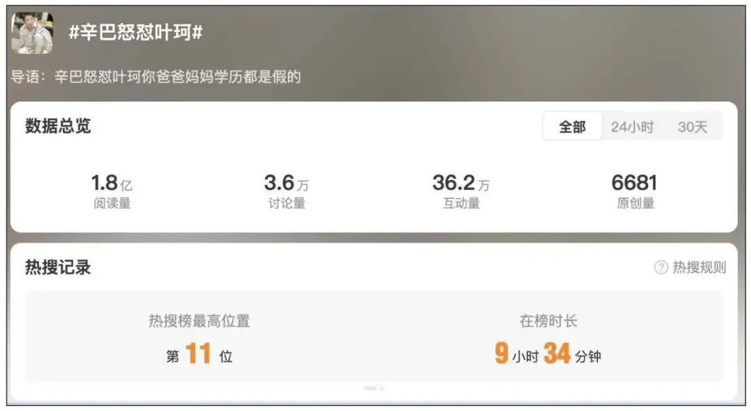 图:辛巴怒怼叶珂的话题,阅读量达1.8亿,来源:新浪微博APP 《听筒Tech》截图