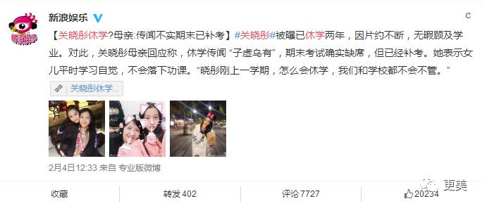 之前网传关晓彤已经休学两年去拍戏,虽然妈妈已经出来辟谣了
