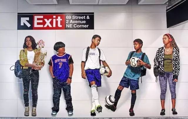 72 街站是巴西裔画家维克·穆尼兹(Vik Muniz)的作品《完美陌生人》。墙上映着纽约的多元人物群像,此幅作品由30个人组成,描绘了不同国籍、不同种族、不同性别、不同职业和教育文化背景的众生相。