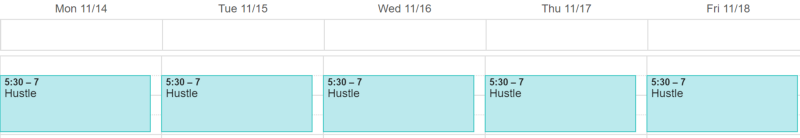 打开你的Google 日历,找到一块一周至少能坚持五天,每天至少持续1.5个小时的时间块,是的,包含周末。(译者注:这可能不太适合天朝的国情,大家而已使用其他的日历软件或者日程安排工具)