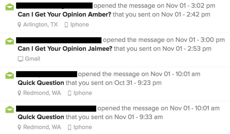 如果他们仅仅只打开过一次你的邮件,那说明此路不通。但是,如果他们连续几天多次打开了你的邮件,那么你可以在四五天后与他们再次联系。我个人的经验是:在最终达成交易之前,一般都需要8-10次的联络。