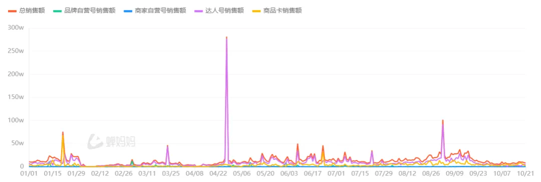 此外,今年以来林源春抖音总销售额达到7500万元以上,其中达人号销售额占比52.71%,品牌过半销售额由达人贡献。