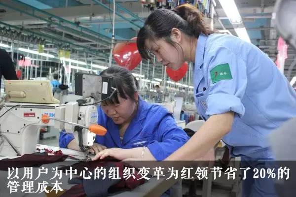红领开始大刀阔斧地去部门、去科层,将30几个大小部门全部打散,员工走出来,变成流程上的一个个节点,让每个员工都围着用户需求转。而80%的中层领导则扮演着“消防员”的角色,负责解决随时出现的问题,并对流程进行规范。这一改革,让红领的管理成本下降了20%。