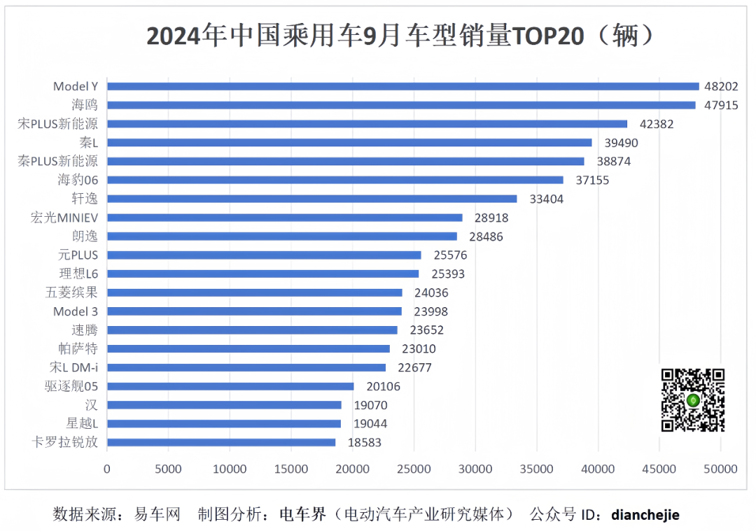 此外,比亚迪的宋PLUS新能源和秦PLUS新能源也分别以42,382辆和39,490辆的销量位列前茅。