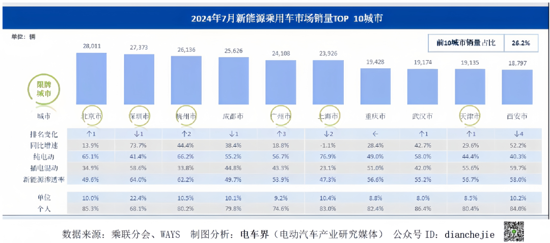 2024年Q3季度,北京、深圳、杭州等一二线城市的新能源乘用车销量位居前列。