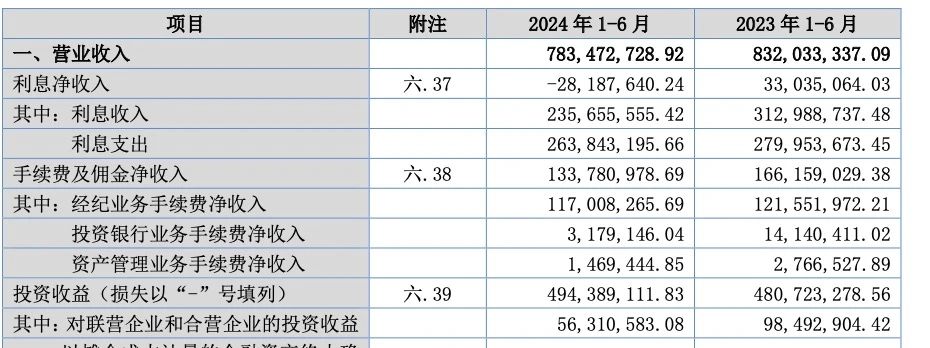 2024年上半年,国都证券利息净收入为-2818.76万元,而2023年同期的利息净收入为3303.51万元。对此变化,国都证券表示,回购交易、其他债权投资业务减少,是导致利息收入减少的主要原因。