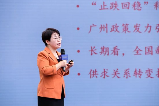 随后,广州市房协与中指研究院联合发布了《2024年广州市房地产发展研究报告》蓝皮书,中指研究院常务副院长黄瑜作《“止跌回稳”目标下,房地产市场展望》主题演讲。她透露,广州今年国庆后两周网签成交58.2万平方米,周均成交较9月增长137%。并认为,此轮政策力促楼市“止跌回稳”,市场热度有望延续,预计四季度新房销售将迎来边际改善。未来,“好房子”将开创新赛道,引领产品升级,满足居民优质住房新期待。