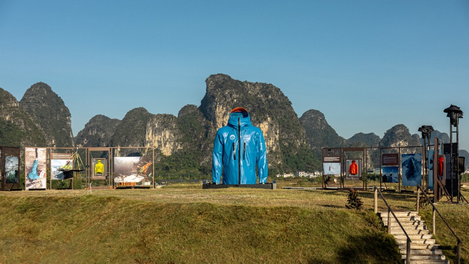 图示:始祖鸟国际攀岩山地课堂展示的巨型Alpha SV 雕塑