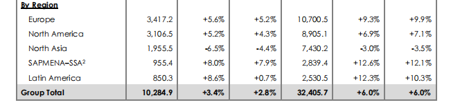 具体来看,欧洲地区销售额同比增长9.9%至107亿欧元(约合人民币822.61亿元);SAPMENA-SSA地区增速最快,同比增长12.1%至28.39亿欧元(约合人民币218.26亿元);拉丁美洲地区同样实现双位数增长,同比增长10.3%至25.3亿欧元(约合人民币194.5亿元);北美地区的销售额则录得89.05亿欧元(约合人民币684.61亿元),同比增长7.1%。